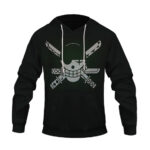 Badass Roronoa Zoro Skull Logo Minimalist Black Hoodie (Kids & Adults)