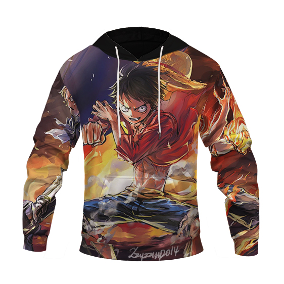 One Piece Blood Brothers Luffy Ace Sabo Painting Art Hoodie (Kids & Adults)