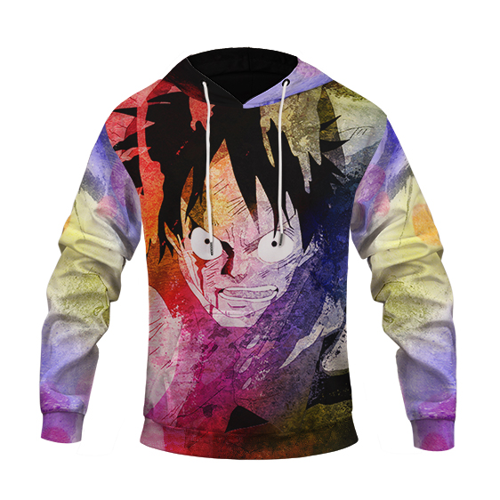 One Piece Monkey D. Luffy Colorful Face Artwork Hoodie (Kids & Adults)