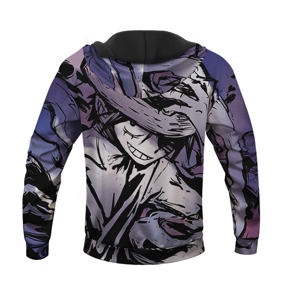 One Piece Monkey D. Luffy Drawing Art Purple Hoodie Jacket (Kids & Adults)