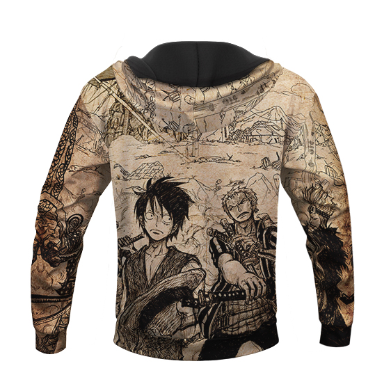 Vintage One Piece Luffy Zoro Trafalgar Law Beige Hoodie (Kids & Adults)